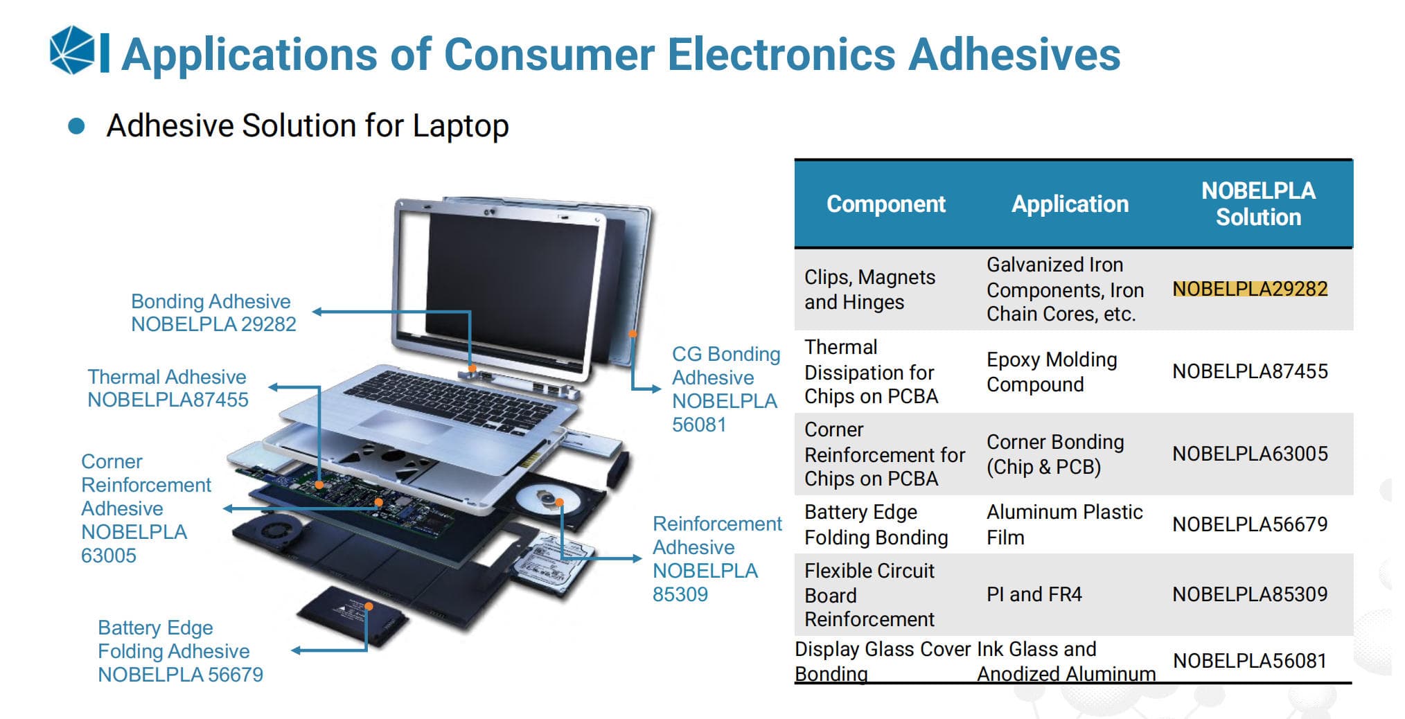 With low odor characteristics and excellent high-temperature resistance, NOBELPLA29282 offers a dependable and durable structural bonding solution suitable for demanding electronic and industrial applications.
