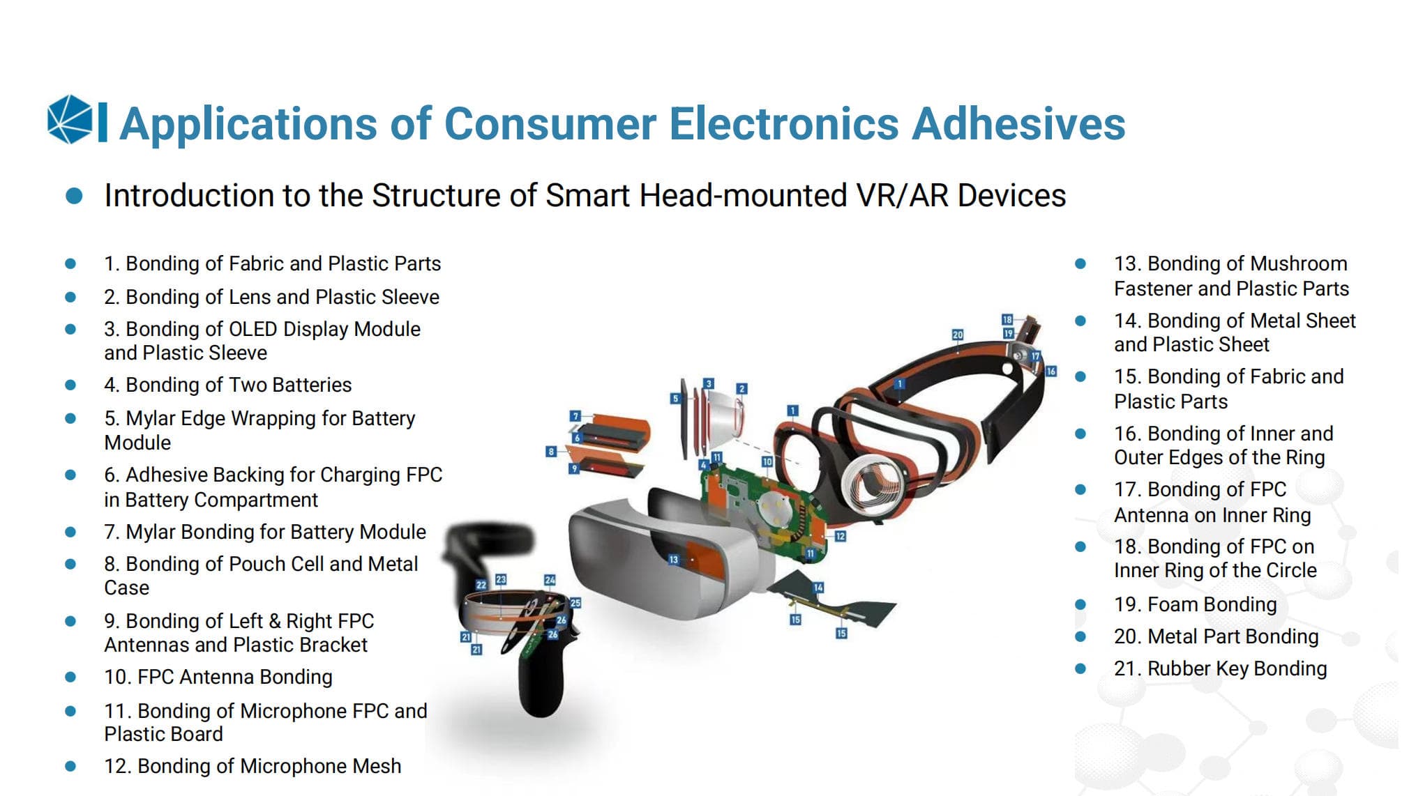 We provide epoxy, silicone (RTV and addition-cure), acrylic, polyurethane, UV-curable, and hybrid adhesive systems.